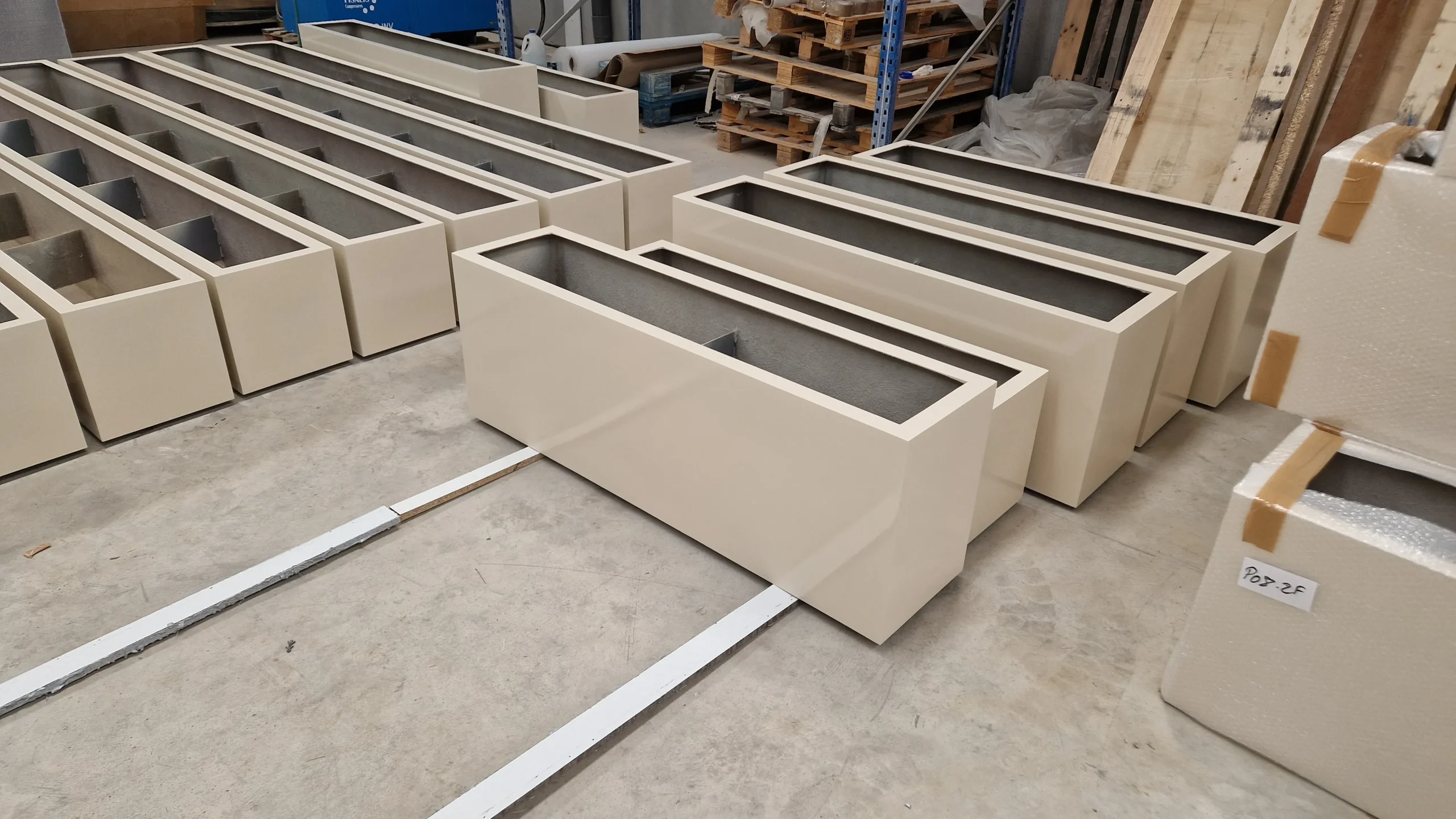 Fabricadas con resinas de poliéster y fibra de vidrio nuestras jardineras son un producto versátil ya
